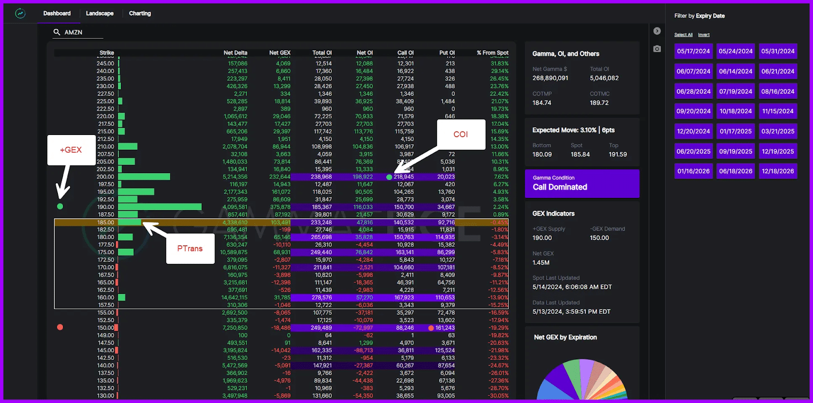 - COI Level: Where the most call open interest sits, regardless of timeframe (secondary profit target)
